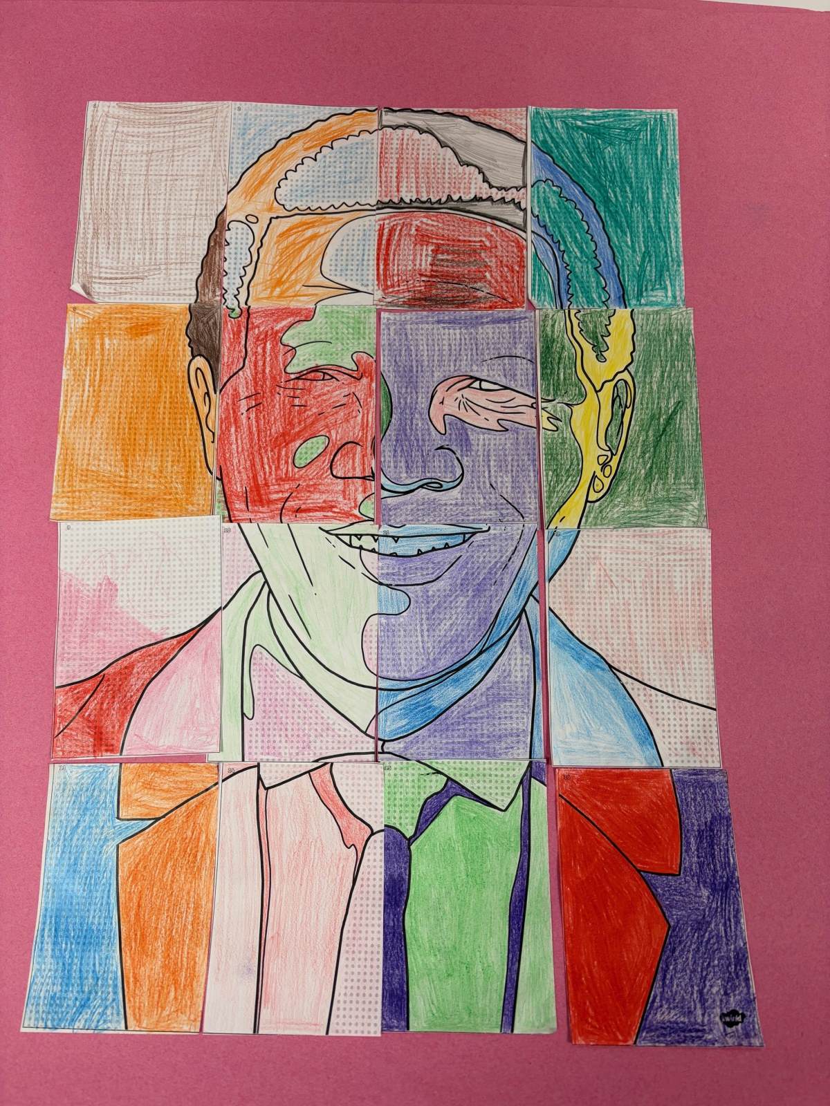 For People and Places Day, we looked at Nelson Mandela and looked at how his life linked to one of our gears: emotional intelligence. We started the day by looking and dicussion about his life and the children made notes on how he felt throughout the big events throughout his life. The children worked together to create pop art portrait of Nelson Mandela.